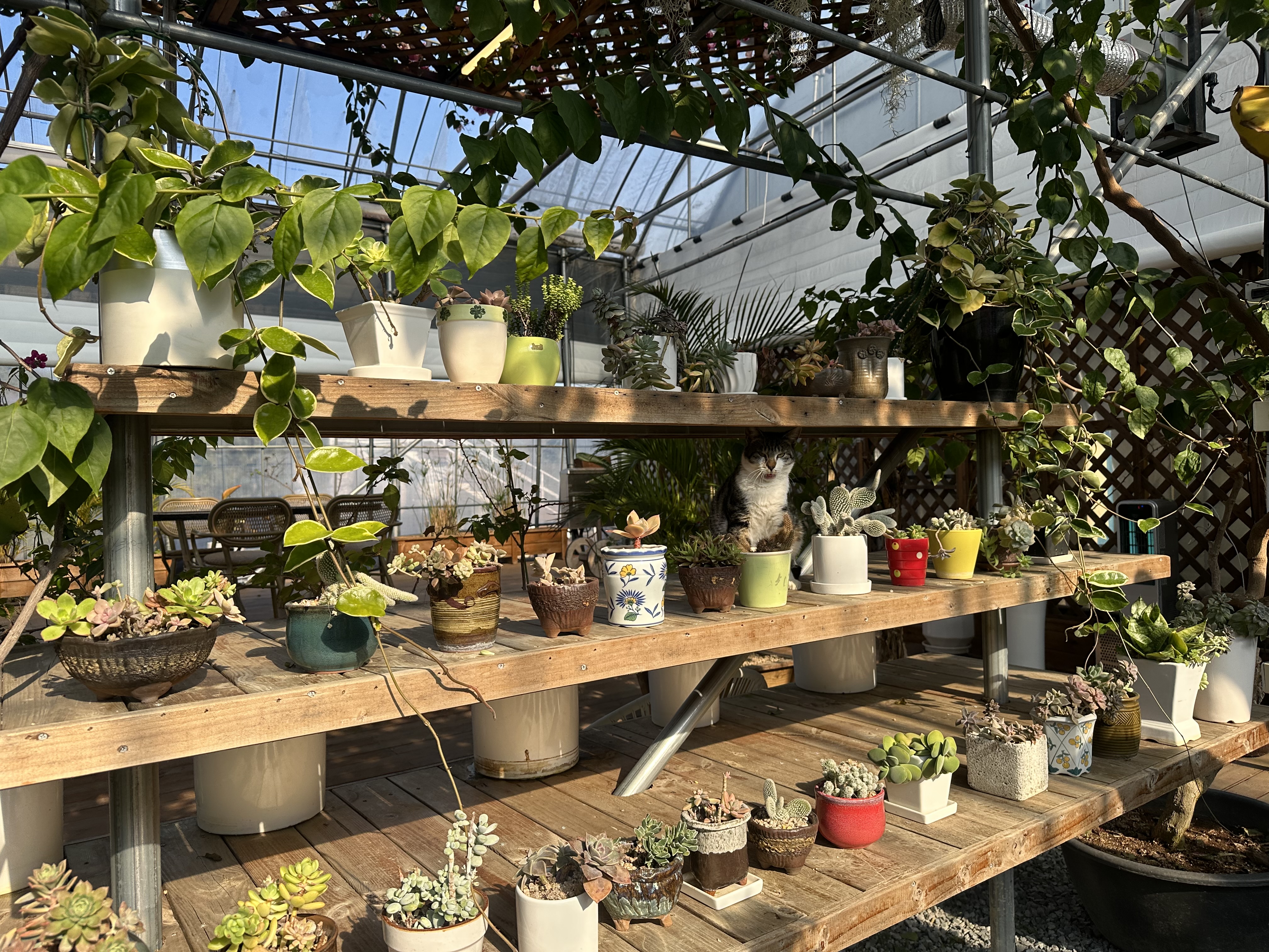 따뜻한 온실 속에서 음료를 마시며 여유를 즐길 수 있었답니다.